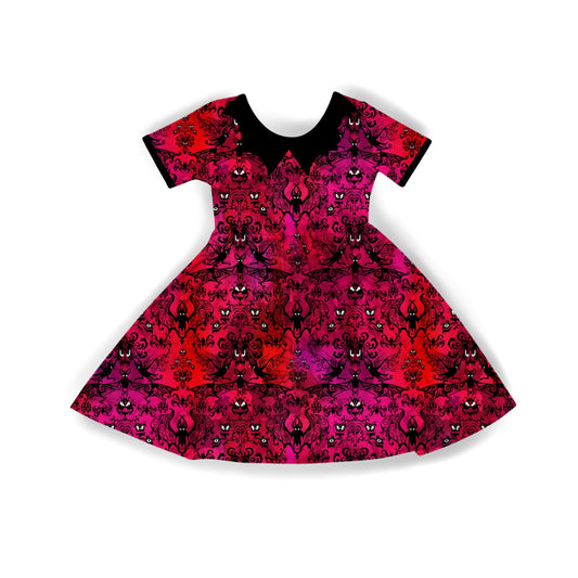 Ready to ship -CHRISTMAS Ghostly Mansion Magical wallpaper Bamboo Twirl Dress with Bat Collar! Halloween + Not Scary!