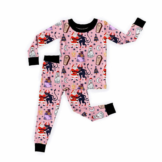 Ready to Ship --DEADSTOCK! Pink Krampus + Kringle Bamboo two piece set! Spooky Christmas