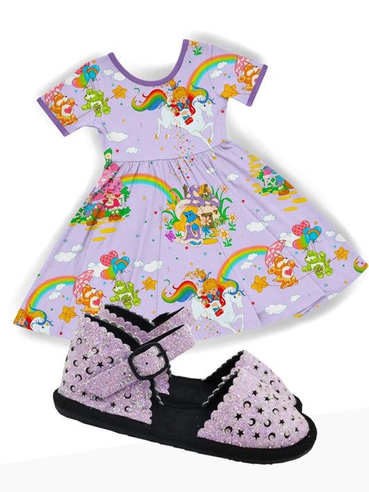 Kids + Adult- Magical 1980s Character Moment Sheet Lavender Pastel Babydoll Twirl! Unicorns, Smurfffs, Cute Bears!