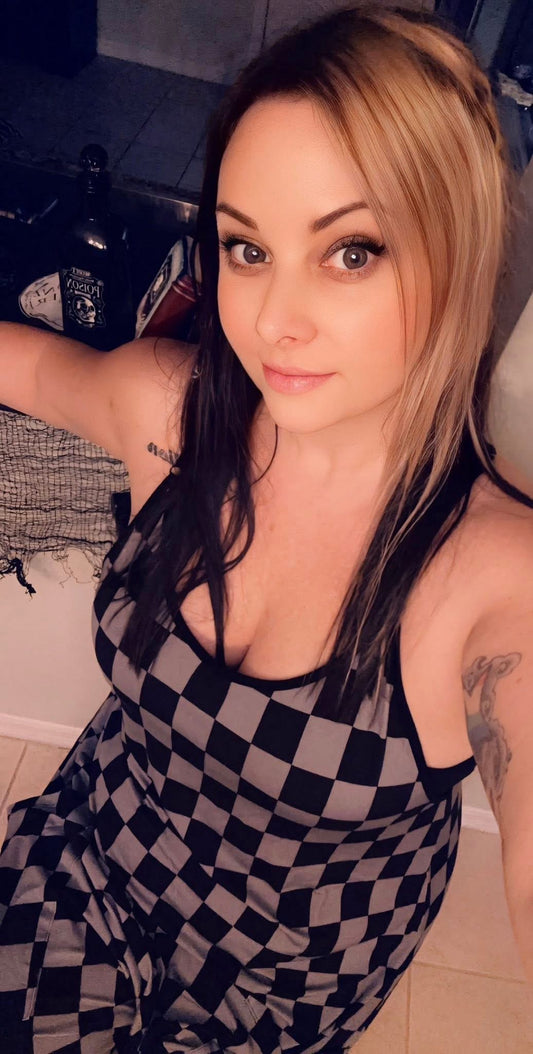 Adult: Darker Black + Gray Grunge Check Overalls! Oversized + Flowy! Grunge Check!