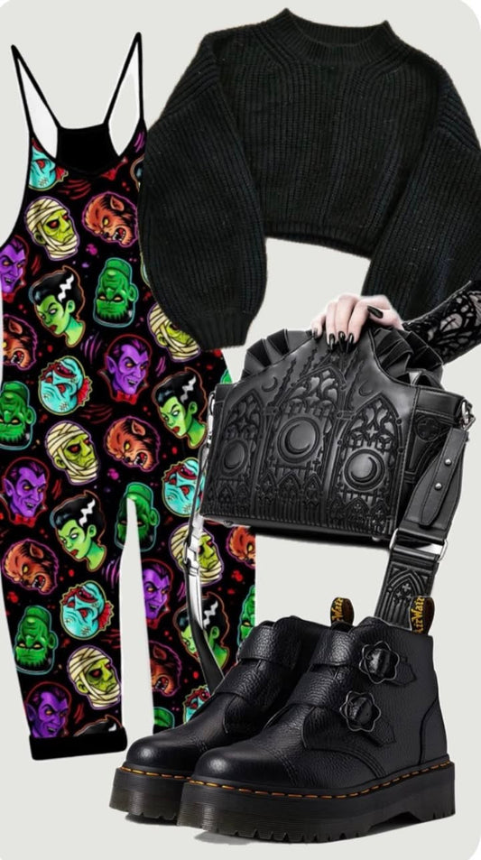 Kids 1990s Addams Bamboo Overalls! Coffin Shape- Spooky Vday! Wednesday, Pugs!