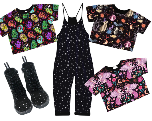 Kids + Adult: Starseed Black + Metallic Star Nightsky Minimal BamBOO overalls! Celestial + Magical!