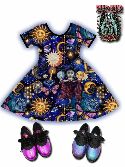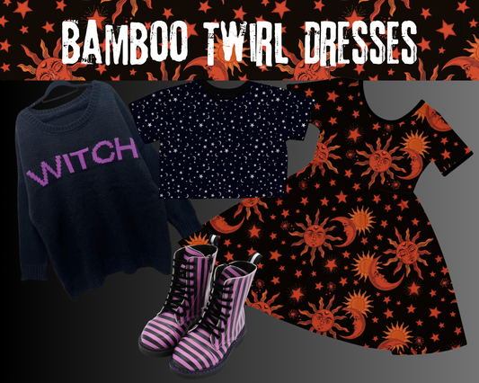 Always wanted to be a 90s witch Sabrina Vintage Moon + Stars Black BamBOO babydoll Twirl dress