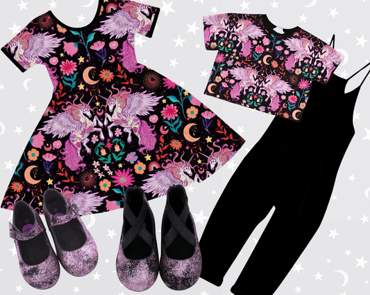 Kids + Adult Mythical 80s Unicorns Vintagecore Bamboo Twirl Dress! Magical Floral!