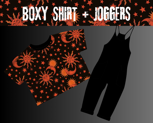 Adult-- A Little Ray of Pitch Black Boxy Tee! Oversized, Flowy, Pair with Joggers!