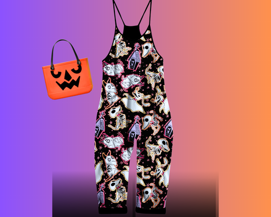 Kids + Adult Spooky Soft goth Burton Pup Undead Sidekicks BamBOOOO Overalls