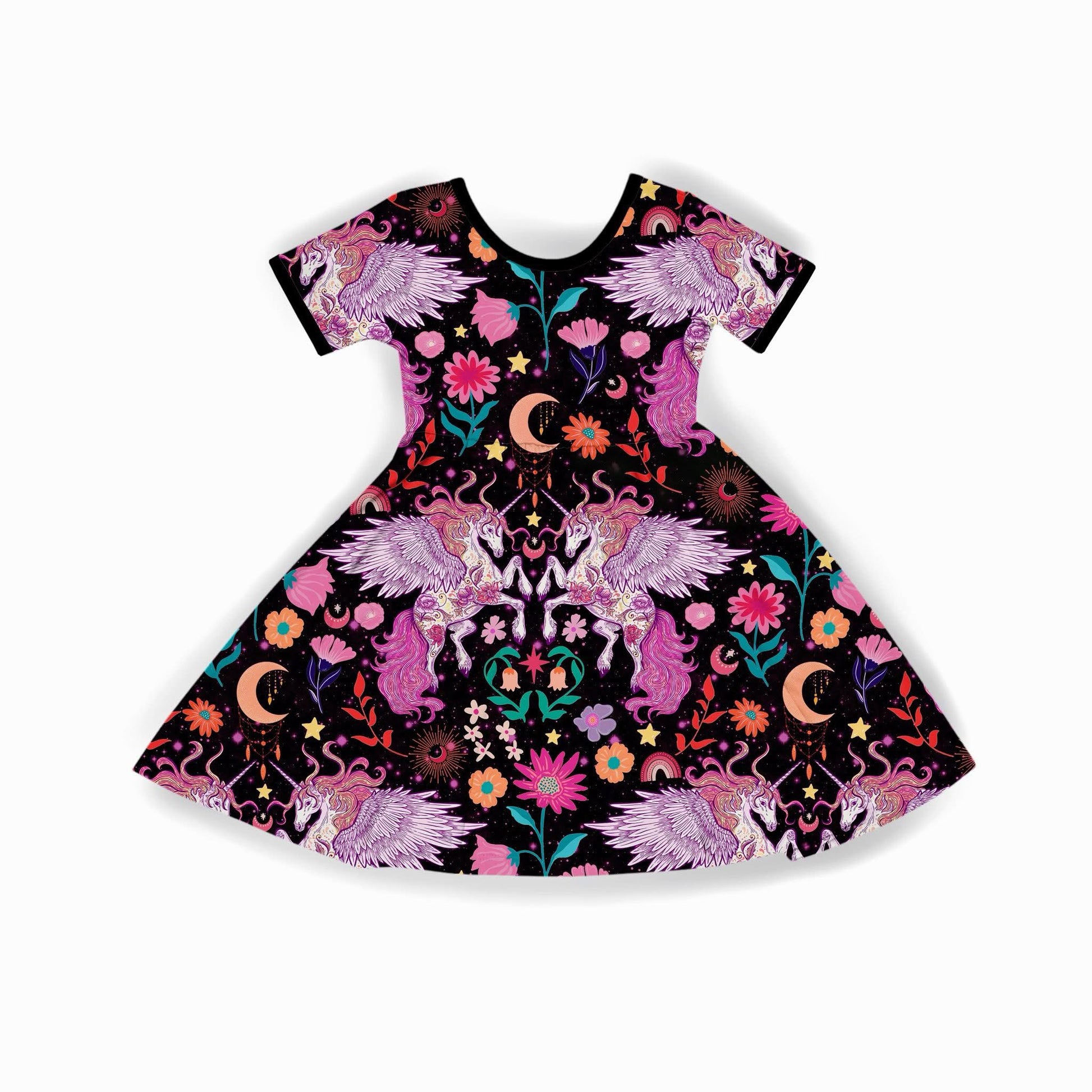 Kids + Adult Mythical 80s Unicorns Vintagecore Bamboo Twirl Dress! Magical Floral!