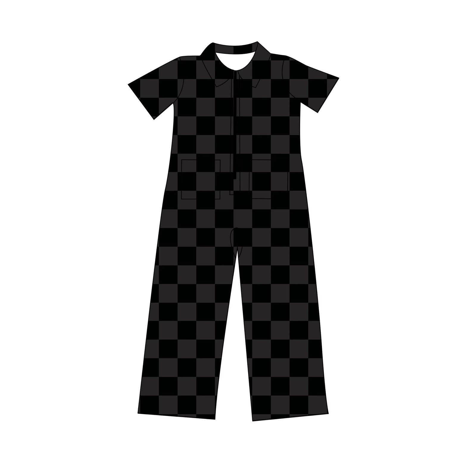 Kids: NEW Check Gray/ Black 960s Mechanic Zip up Vintage Suits! Zip up! Oversized Pockets!