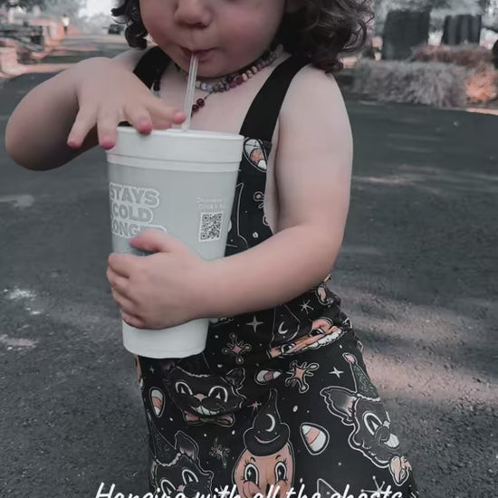 Ready to Ship -- Kids Soda Pop Demon Bamboo Daywear Overalls! Comfy + Modern Fit! Hipster! DEMON OVERALLS